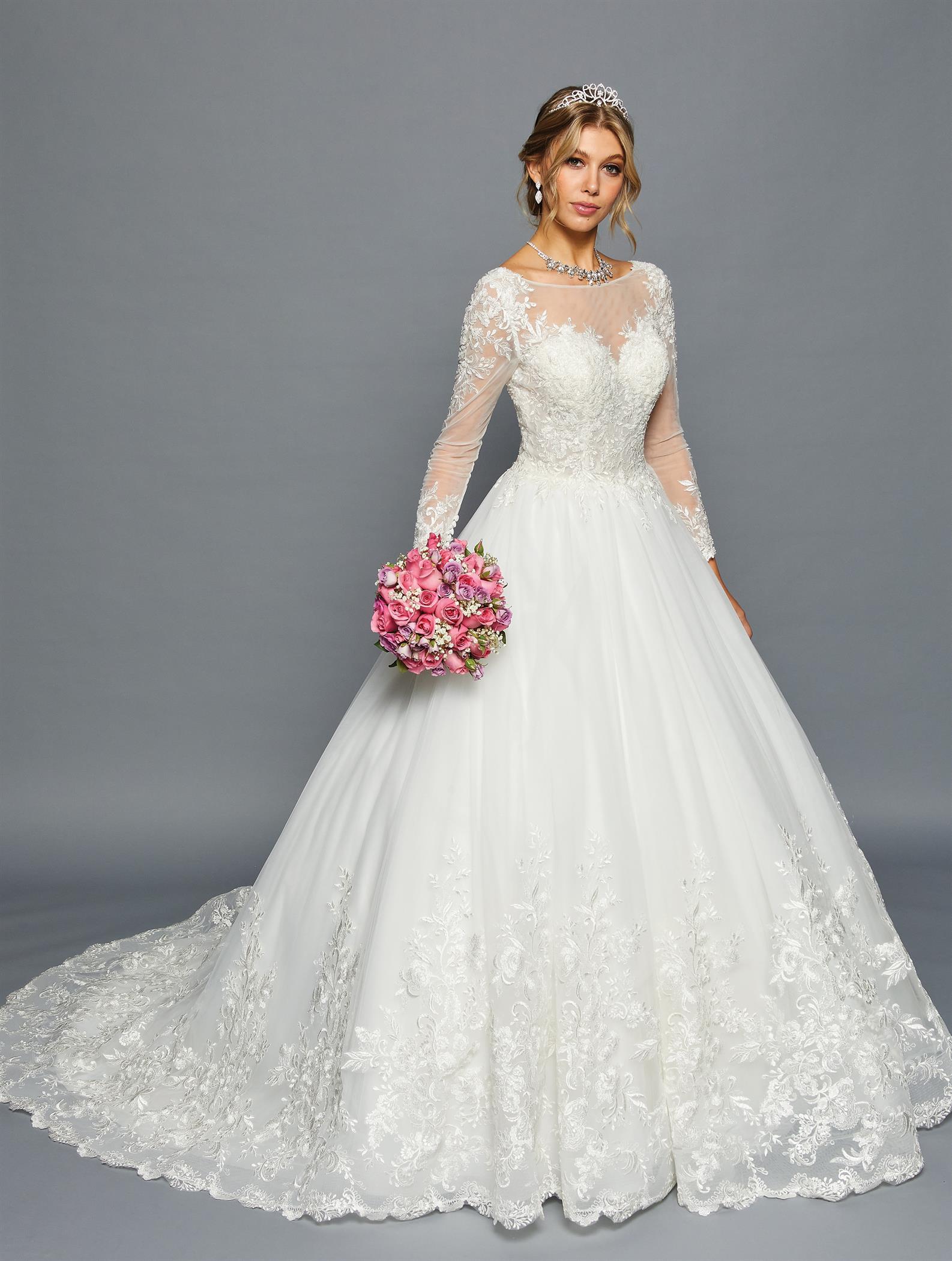LONG SLEEVE ILLUSION BOAT NECKLINE A-LINE / BALLGOWN CHAPEL TRAIN WEDDING DRESS WITH BEADED LACE SEQUINS APPLIQUE
